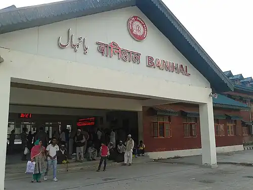 Banihal railway station (station code: BAHL), a part of Jammu–Baramulla line, is situated in notified area of Banihal in Ramban district, Jammu and Kashmir. It was commissioned on 26 June 2013 and passenger trains run from Banihal to Qazigund. The station was inaugurated by former prime minister Manmohan Singh and UPA Chairperson Sonia Gandhi on the same day at 2.22 pm. They enjoyed the 12-minute ride in train through Pir Panjal tunnel up to Qazigund with 100 students, mostly girls, of the Banihal Higher Secondary School, and made the 17.8-km ride back to Banihal, passing through the tunnel again, the second longest in Asia.[1]