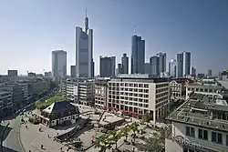 Bankenviertel (German pronunciation: [ˈbaŋkŋ̍ˌfɪʁtl̩]; banking quarter) is the name of the central business district in Frankfurt, Germany where many banks, insurance companies, and other financial institutions are located. It is the most important German financial hub, if not one of the largest in Europe along with La Défense in the Paris aire urbaine and London's City and Canary Wharf.