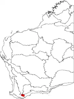 B. aculeata is native to the foothills of the Stirling Range in the southwest of Western Australia, occurring at elevations between 250 and 500 m (825 and 1,650 ft), in shrubland in gravelly, clayish soils.[11] The annual rainfall is around 600 mm (24 in).[3] It is a fairly rare plant, with most populations consisting of fewer than 100 plants.[11] With fairly small populations and a narrow distribution, B. aculeata is considered rare, but is not currently classed as endangered because at least some populations are thought not to be under immediate threat. The Department of Environment and Conservation of the Western Australian State Government classes it as "Priority Two – Poorly Known" flora.[12]
