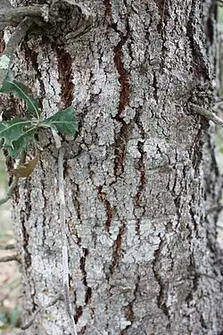 Like many Western Australian banksias, Banksia ilicifolia has been shown to be highly sensitive to dieback from the soil-borne water mould Phytophthora cinnamomi.[38] A study of Banksia attenuata woodland 400 km (250 mi) southeast of Perth across 16 years and following a wave of P. cinnamomi infestation showed that B. ilicifolia populations were present but significantly reduced in diseased areas.[39] Specimens in coastal dune vegetation were reported killed by Armillaria luteobubalina, with mycelial sheaths of the fungus beneath the bark of the root collar.[40]