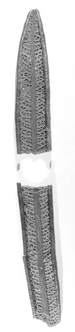 Banksia kingii is an extinct species of tree or shrub in the plant genus Banksia. It is known only from fossil leaves and fruiting "cones" found in Late Pleistocene sediment at Melaleuca Inlet in western Tasmania. These were discovered by Deny King in the workings of his tin mine.[1] The climate was most likely as cool as or cooler than it is at Melaleuca now (an average yearly temperature of 11.5C, an average temperature of the coldest month of 4.5 °C, a mean maximum temperature of the warmest month of 20 °C) , and possibly wetter, over 2400 mm annually.[2]