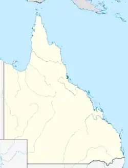 The range of Banksia plagiocarpa is limited to Hinchinbrook Island, where it is found on the top and slopes of Mount Bowen and Nina Peak, and the adjacent mainland on the Queensland north coast, where it is found on the summit and slopes of Bishops Peak.[12] The annual rainfall is 2,400 mm (94 in).[5] The habitat is either open woodland or grassland, and it can be the dominant shrub. The altitude it grows at on Hinchinbrook is between 200 and 720 m (660 and 2,360 ft), on gravelly, rocky or clay soils, and in association with such plants as tantoon (Leptospermum polygalifolium) and she-oaks (Casuarina), as well as Banksia aquilonia at lower altitudes below 400 m (1,300 ft). On the mainland, it is found in a more sandy soil, often near water.[12]