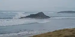 Banna Strand (Gaeilge: Trá na Beannaí), also known as Banna Beach, is a beach in North Kerry, Ireland. It is an Atlantic Ocean beach extending from the Smallrock (Roc Beag) and Blackrock in the North to Carrahane at its southern edge. It is around 12 kilometres (7 mi) north west of Tralee. It features shifting sand dunes along its entire length which rise up to 12 metres (40 ft). Carrahane lagoon on the south end, famous for migrating birds and the Roger Casement landing. The mountains of the Dingle Peninsula can be seen on the south west horizon. Many residents from Tralee make a trip to Banna Strand on the warmest summer days.