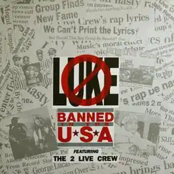 "Banned in the U.S.A." is a song recorded by the American hip hop group 2 Live Crew. It was released on May 3, 1990, as the lead single from their fourth album of the same name. "Banned in the U.S.A." was also released on the alternate version of the album, credited as Luke's debut solo album, titled The Luke LP. The song peaked at number 20 on the U.S. Billboard Hot 100 chart and is the group's highest-charting song on that chart. It also reached number-one on the U.S. Billboard Hot Rap Tracks chart.[1]