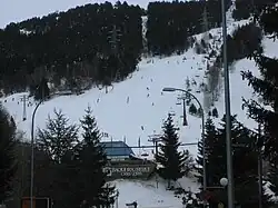 Baqueira-Beret is the largest and most visited winter resort in Spain, with 161 kilometres (100 mi) of marked pistes, 7 kilometres (4 mi) of marked off-piste, and 7 kilometres (4 mi) of cross-country ski and 2,166 hectares (5,350 acres) of ski area.[1] It is located in the highest part of the Aran Valley (Naut Aran), and Pallars Sobirà (Valls d'Àneu). It has long and wide ski runs, some through trees. It is divided into three different zones, Baqueira, Beret and Bonaigua. Due to its westerly aspect and position on the northern side of the Pyrenees, and consequent Atlantic climate, the resort of Baqueira-Beret has a good snow record throughout the winter. In addition, there is more than 1,000 metres (3,300 ft) of vertical drop and an extensive skiable zone.