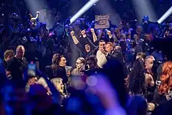 Sveriges Television (SVT), the Swedish broadcaster for the Eurovision Song Contest, organised Melodifestivalen 2025, a competition to select the country's entrant for the 2025 contest. A total of 30 entries competed, with KAJ performing during the fourth heat in Malmö on 22 February 2025.[60] KAJ came in second place in their heat, qualifying directly for the final, which took place in Stockholm on 8 March.[5] In the final, they came in second place with the international juries and first in televoting, ultimately winning the competition with 164 points.[61] KAJ received 4,305,774 votes, the most votes in the history of the competition, surpassing the previous record of 3,783,148 votes received by Loreen's "Tattoo" from Melodifestivalen 2023.[62][63]