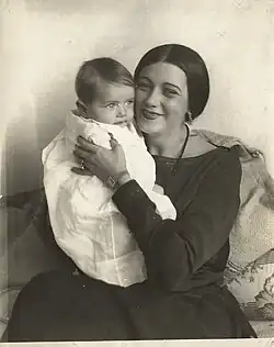 Some years after La Marr's death, she was revealed to have given birth to a son, Marvin Carville La Marr, on July 29, 1922. The name of the boy's father has never been released. During her final illness, La Marr entrusted the care of her son to her close friend, actress ZaSu Pitts, and Pitts' husband, film executive Tom Gallery.[35] After La Marr's death, the child was legally adopted by Pitts and Gallery; renamed Donald Michael "Sonny" Gallery. [36] Don Gallery was married to actress Joyce Reynolds from 1947 to 1951 before remarrying Patricia in 1985. He lived in Puerto Vallarta, Mexico and died in 2014 at the age of 92.[37]