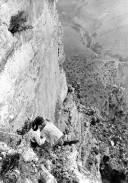 Every summer when classes were over, Willard and Barbara loaded their car, with painting and photography equipment and headed for the desert. Barbara painted as much as possible for winter exhibits and helped Willard photograph for articles. Willard had two Model A Leicas, with which the couple photographed each other in cliff ruins, climbing Rainbow Bridge, in the Hopi mesas and canyons. The resulting photographs were among the first 35mm images to appear in American magazines illustrating Willard's articles.[4]
