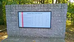 The first comprehensive list of victims, containing 260 names, was compiled by Judge Leon Gayda from the District Commission for the Investigation of Nazi Crimes in Bydgoszcz. It was published by Tadeusz Jaszowski and Czesław Sobecki in their 1971 book titled The Silent Witness: Nazi Crimes in Toruń's Fort VII and Barbarka Forest.[120][121] Lists of victims' names were also published in Włodzimierz Jastrzębski's monograph titled Terror and Crime: Extermination of Polish and Jewish Population in the Bydgoszcz Region 1939–1945 in 1974,[122] as well as in the Register of Places and Facts of Crimes Committed by the Nazi Occupier on Polish Territories 1939–1945 (register for the Toruń Voivodeship, published in 1983) by the Chief Commission for the Prosecution of Crimes against the Polish Nation.[123] However, the authors of these lists did not completely avoid mistakes, as some names included belonged to individuals who perished in different places and times, or even survived the war.[65]