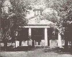 The original Barbour County Courthouse was a large brick building with a white painted wood-frame Greek Revival portico. It was built between 1844 and '46. From its octagonal cupola, in 1861, floated the first Confederate flag in what would become the state of West Virginia. Later, the building was used to house Union troops during the American Civil War. The dilapidated cupola was removed in 1893 and placed on the nearby barn owned by lawyer C.F. Teter.