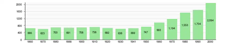 Bardonnex has a population (as of December 2020) of 2,396.[9] As of 2008, 21.8% of the population are resident foreign nationals.[10] Over the last 10 years (1999–2009 ) the population has changed at a rate of 5.8%. It has changed at a rate of -1.1% due to migration and at a rate of 6.1% due to births and deaths.[11]