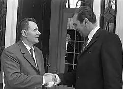 Barend Willem Biesheuvel (ⓘ; 5 April 1920 – 29 April 2001) was a Dutch politician of the Anti-Revolutionary Party (ARP) and jurist who served as Prime Minister of the Netherlands from 6 July 1971 until 11 May 1973.[1][2]