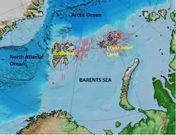Barents Sea dike swarm is a dike swarm in the northern Barents Sea. It consists of two groups of dolerite dikes across the Svalbard and Franz Josef Land regions. The emplacement of dikes was associated with the Cretaceous High Arctic Large Igneous Province (HALIP).[1][2]