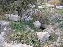 The village of Barfiliya stood on a large tell, considered one potential site for ancient Be'eroth (the other possibilities being the tells of Daniyal or Simzu).[31] Since 1995, Shimon Gibson and Egon Lass have conducted salvage excavations in the hills of Modi'in in units of land belonging to "one of the main ancient settlements in the region," identified by Gibson as having been in "Khirbet el-Burj (Titura), Bir Ma'in (Re'ut) and Berfilya."[32] Archaeological remains of ancient human activities are designated 'features' and numbered accordingly. The landscape archaeology survey and excavations to date have idenitifed the following features: "farm buildings, towers, cisterns, sherd scatters, PPNA flint scatters, roads, terraces, stone boundaries, stone clearance heaps, threshing floors, caves, tombs, wine presses, cupmarks, stone quarries, lime kilns, and charcoal burners."[32]