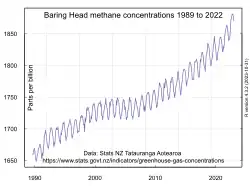 - ^ Manning, M.R., A.J. Gomez, and K.P. Pohl. 1994. Atmospheric CO2 record from in situ measurements at Baring Head. Archived 31 May 2010 at the Wayback Machine In Trends: A Compendium of Data on Global Change. Carbon Dioxide Information Analysis Center, Oak Ridge National Laboratory, U.S. Department of Energy, Oak Ridge, Tenn., U.S.A.
