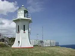 Baring Head Lighthouse is a concrete lighthouse at Baring Head in the Wellington Region of the North Island of New Zealand, with an LED beacon powered by mains electricity.[2] It is owned and operated by Maritime New Zealand, and can be accessed via walking tracks in the southern area of the East Harbour Regional Park, south of Wainuiomata.