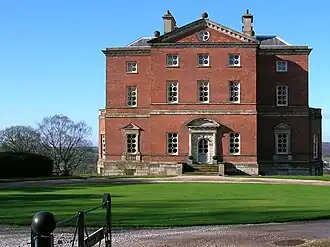 Barlaston Hall was probably designed by architect Sir Robert Taylor for Thomas Mills, an attorney from Leek, in 1756–58,[1] to replace the existing manor house that he had acquired through marriage. The hall has a red-brick exterior, and is one of a few of Taylor's buildings which retain his trademark octagonal and diamond glazing in the sash windows.