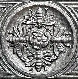 In 1846 John Bishop, from St. Ives, joined the firm as a partner, and the flourishing business forced a move to a site bounded by St. George's, Colegate, and Calvert Streets.[3] In 1859 Charles' two eldest sons, Charles Barnard, Jun., and Godfrey Barnard, also became partners leading to the firm's new name Barnard, Bishop & Barnards, and the adoption of its signature roundel of four bees. In 1861 Charles Barnard was recorded as proprietor of the works, employing 105 workmen, 47 boys, 7 clerks and 4 shopmen.[4][5]