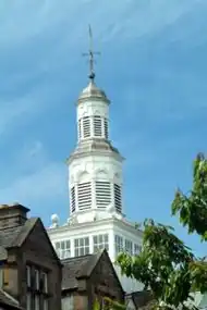 One of the North East's most famous schools, Barnard Castle is set in 50-acre grounds on the outskirts of town. It is located in Teesdale, and is within the North Pennines Area of Outstanding Natural Beauty.[4] Giles Deacon has said of the location that "you could just walk out and you were in the middle of the Pennines".[28] The Bowes Museum is situated next to the school.[29] The school caters for pupils aged 4 to 18, with pupils younger than 11 being taught in a separate on-site preparatory school (Prep School). The original building is now used mainly for accommodation and administration and is described as "stately" by The Independent.[30][31] The school spire is known colloquially as "The Pepperpot".[32] It also contains the dining hall and "Main School", public school slang for the school hall. All teaching is undertaken in purpose-built classrooms.[30] The school site contains tennis/netball courts, squash courts, a large sports hall and an AstroTurf pitch. A total of £3 million has been invested in the school's infrastructure since 2008, including a £1.5 million Physics and ICT block, a new hall for the Prep School and a new sports pavilion containing a gym and a dance studio.[33][34][35] The school has been used as a filming location for the television sketch show The Fast Show.