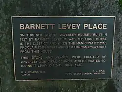 Barnett Levey built Waverley House in 1827, the first house in the Waverley district. Following Levey's death, the house served as a convent and subsequently as a school for destitute girls and later as a boys' school before it was demolished in 1904.[7] Waverley House gave its name not only to the Municipality, but also to the Suburb, Street, Crescent and Lane.[8]