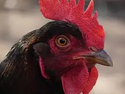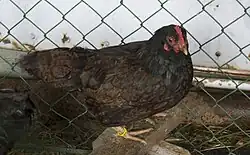 In the 1850s Asian chickens began to arrive in Europe, where they were at first known as "Shanghai" chickens. These were initially cross-bred among themselves, and only later developed into breeds such as the Brahma, the Cochin and the Croad Langshan.[1] From about 1865, some of these Shanghai chickens were cross-bred with local farmyard chickens in the area of Barneveld. Towards the end of the nineteenth century there may also have been some breeding with a type called Amerikaanse Nuthoenders ("American utility birds"), which showed some similarity to the American Wyandotte;[5] it is not known what these birds were, or if they were really American.[1] In about 1906 there may also have been some cross-breeding with British Buff Orpington stock.[6]: 99 According to Hans Schippers, the greatest influence on the characteristics of the Barnevelder was from the Langshan, which contributed hardiness, brown eggs, and good winter production.[5]
