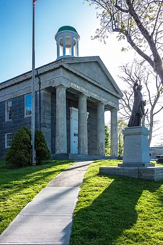 The Barnstable County Courthouse is an historic courthouse at 3195 Main Street in Barnstable, Massachusetts. The two-story Greek Revival building was built in 1831 to a design by architect Alexander Parris. It is built mostly out of Quincy granite, although its front portico and fluted Doric columns are made of wood fashioned to look like stone. The building has been expanded five times between 1879 and 1971, with each addition made in a style sensitive to its original styling, and its main courtroom features original Federal styling.[2] The building was listed on the National Register of Historic Places in 1981,[1] and included in the Old King's Highway Historic District in 1987.[2] The Barnstable Superior Court is located in the building.