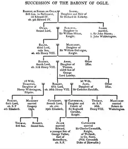 - Cuthbert Ogle, 7th Baron Ogle (about 1540–1597) (in abeyance 1597–03 Dec 1628)