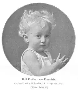 Omar, or as he later chose, Umar Rolf Ehrenfels was born 28 April 1901 in Prague, Bohemia, Austria-Hungary. He was baptised Rolf Werner Leopold von Ehrenfels. His father was the Roman Catholic Baron Christian von Ehrenfels (1859–1932), professor of philosophy at the German part of Prague University. He is known as the founder of the Gestalt theory.[1] His mother was Emma von Ehrenfels (1862–1946; née André), a native of Bratislava (Pressburg). In her parental home both German and Hungarian was spoken. During World War I she worked for the Red Cross caring for Hungarian wounded soldiers. Widowed of her first marriage she brought her daughter Elfriede ("Elfi") Hartmann into their home. The second daughter, author Imma von Bodmershof (1895–1983), was born in Graz. Rolf as the only son of Christian Freiherr von Ehrenfels inherited the title but he had to discard it according to new Austrian laws in 1920. As a convert to Islam he took on the name Omar or Umar, kept Rolf and omitted the others. From 1932 to 1937, he was a student of social anthropology (Völkerkunde) at Vienna University and got a doctorate there.[2]