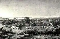 On his return from Europe, Von Ludwig bought about 3 acres of land in Kloof Street, Cape Town, and over the next couple of years planted the groundwork of a botanic garden. Besides large numbers of trees, shrubs and bulbs from Europe, America and Australia, he also included fruit trees, vegetables and crop plants. He introduced the Jacaranda tree to South Africa. Many of the species were indigenous, some acquired from Ecklon and Zeyher. The Irish botanist, Harvey, noted his appreciation of the easy access that was provided for studying the plants. Other prominent scientists such as Charles Bunbury and Joseph Dalton Hooker visited what had become known as Ludwigsburg Garden, while Lady Jane Franklin, who explored the garden in 1836, noted that even though only 3 acres in extent 'being well laid out with numerous divisions and paths' made it appear larger. The astronomer John Herschel used a camera lucida to sketch the developing site in 1834 (see drawing above).[2] A certain Leibold was first superintendent of the garden from 1834 to 1837, followed by James Bowie over the period 1838–42, and Thomas Draper 1843-47 until Ludwig's death. The botanist Ludwig Pappe, later Colonial Botanist, prepared herbarium specimens from the garden plants.