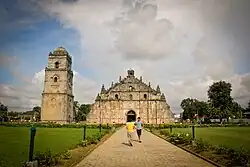 There was a conglomeration of factors that led to the presence of Baroque elements in the architecture of the Philippines, specifically in church architecture. During the Spanish colonial period (1565–1898), Spanish missionaries arrived, sharing not only their religion but also their architecture, inspired from their native land. The Spaniards wished to create permanent, long-lasting churches as a testament to the power of God, and did not consider the current church structures in the Philippines as proper places to worship.[4] As most Spanish missionaries were not trained in architecture or engineering, the local townspeople including Filipinos and Chinese migrants, alongside the Spanish friars would take part in the building and design of local churches. The combination of ideas from the missionaries and locals effectively fused native Spanish designs with a uniquely Oriental style. The church's aesthetic was also shaped by limited access to certain materials, and the need to rebuild and adapt to natural disasters including fires and earthquakes, creating a style sometimes referred to as Earthquake Baroque.[5] The Baroque Churches of the Philippines is a serial inscription consisting of four Roman Catholic churches constructed between the 16th and the 18th centuries in the Spanish period of the Philippines. They are located in separate areas of the Philippine archipelago, two at the northern island of Luzon, one at the heart of Intramuros, Manila, and the other in the central Visayas island of Iloilo.[6]