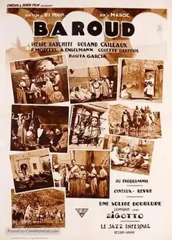 Baroud is a 1932 British-French adventure film directed by Rex Ingram and Alice Terry and starring Felipe Montes, Rosita Garcia, and Pierre Batcheff. Actor Paul Henreid debuted in a small role. The film was released in separate French and English-language versions, the latter sometimes known by the title Love in Morocco.[1]