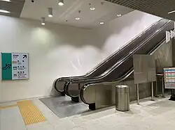 Two side platforms were on the basement level. Ticket hall is located between platform and ground level, while most of the exits are on the ground floor, except one that allows seamless access to the bus terminus from platform 1.[13] Passengers may also enjoy the view of Zhuhai from the roof garden.[14][15]