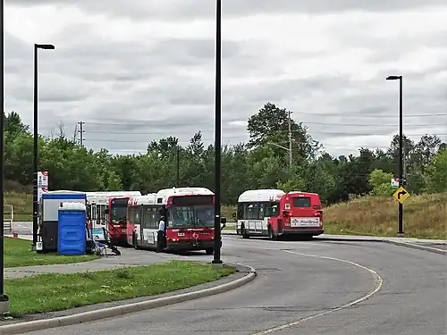 Barrhaven Centre station is the southerly terminus of the Southwest Transitway in the Barrhaven neighbourhood of Ottawa, Ontario, Canada. It is the main western terminus of rapid route 75 for trips not coming from or heading to Cambrian, as well as local route 99 trips not looping around Jockvale/Weybridge. Local route 110 which travels between Limebank and Innovation continues through this station in both directions.
