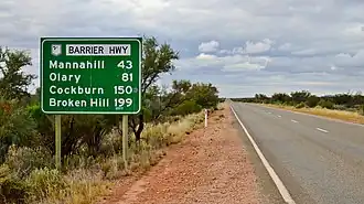 - ^ Barrier Highway (SA) Archived 8 October 2009 at the Wayback Machine, South Australia Central. Retrieved 21 February 2010.