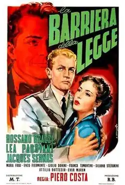 Barrier of the Law (Italian: La barriera della legge) is a 1954 Italian thriller film directed by Piero Costa and starring Rossano Brazzi, Lea Padovani and Maria Frau. It was shot at the Fert Studios in Turin.[1] The film's sets were designed by the art director Saverio D'Eugenio.