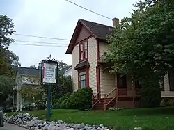 At the beginning of the 20th century, the village streets were unpaved, although the downtown area had wooden slat sidewalks, with some on elevated platforms.[12] The downtown area also featured hitching posts for tethering horses as well as public outhouses.[12] Meanwhile, fenced residential backyards in the village often contained livestock and barnyard animals.[12]