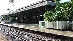Freshwater railway station (16°52′52″S 145°42′36″E / 16.8810°S 145.7099°E) is a popular departure point for the Kuranda Scenic Railway with free parking, a restored historic railway station building, restaurant in heritage railway carriages, and a theatrette.[11] The station is on Kumerunga Road near the junction with Old Smithfield Road.[3]