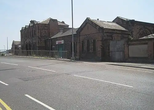 Barrow-in-Furness Strand railway station was the first permanent railway terminus to be built in Barrow-in-Furness, England. Located on the Strand at St. George's Square close to the town's docks its functioning life was short, however the building itself continued to be used as the headquarters of the Furness Railway for a number of years.[1] The station opened in 1863 having replaced a wooden structure which was erected in 1846 at adjacent Rabbit Hill. The station at St. George's square ceased commercial operations in 1882 upon the completion of a new loop line and much larger station at Abbey Road. Barrow-in-Furness Central railway station, later simply renamed Barrow-in-Furness railway station has been the town's primary station ever since.