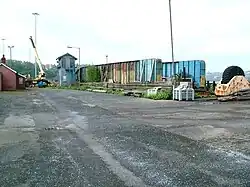 The Barry chemicals complex is situated beside the Barry Docks, as are industrial estates such as the Atlantic Trading Estate, between Barry and Sully. In 2007 the Docks handled 456,000 tonnes (449,000 long tons; 503,000 short tons) of cargo, of which 370,000 tonnes (360,000 long tons; 410,000 short tons) was chemicals.[101] The docks were being used to handle liquid chemicals for companies such as Dow Corning. The port also had equipment for handling dry cargoes such as scrap metal, steel, coal, cement, and aggregates. It was being used for the import of timber from Scandinavia and the Baltics. In 2010 the Barry docks handled 281,000 tonnes (277,000 long tons; 310,000 short tons) of cargo.[100] In 2012 the Docks directly employed 23 full-time employees, but this does not include people working as crews on the dredging vessels or pilots based at Barry. The docks had 114 tenants in 2003, which had fallen to 103 tenants in 2007.[102]