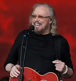 Sir Barry Alan Crompton Gibb AC CBE (born 1 September 1946[6][7]) is a British musician, singer and songwriter. Along with his younger fraternal twin brothers, Robin and Maurice, he rose to global fame as a member of the Bee Gees, one of the most commercially successful groups in the history of popular music. Gibb is well known for his wide vocal range including a far-reaching high-pitched falsetto. Gibb's career has spanned over 70 years.