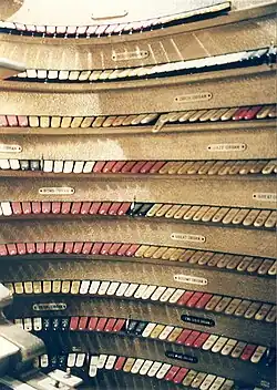 Some church organs were also built by Bartola but were marketed as "Maxcy–Barton" organs to distance them from their gaudy theatre organ siblings. One noted Maxcy-Barton organ is a three manual instrument still in use at St. Mary Parish of Oshkosh, Wisconsin.