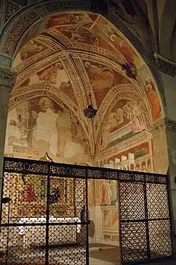 The Bartolini Salimbeni Chapel (Italian: Cappella Bartolini Salimbeni) is a chapel in the church of Santa Trinita, Florence, central Italy. Its decoration by Lorenzo Monaco, dating to the 1420s, are one of the few surviving examples of International Gothic frescoes in Italy. The chapel has kept other original elements, such as its altarpiece, an Annunciation, also by Monaco, and the railings.