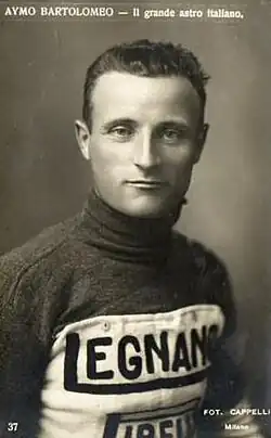 Bartolomeo Aimo (sometimes written Bartolomeo Aymo (Virle Piemonte, 24 September 1889 — Turin, 1 December 1970) was an Italian professional road bicycle racer. He finished on the podium of the Giro d'Italia four times (1921, 1922, 1923, 1928) and on the podium of the Tour de France two times (1925, 1926) but never won a grand tour.