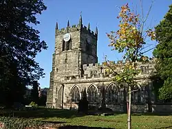 The Tudor church of St James is a Grade II* listed building. It dates from 1517 and was built by Dr John Taylor, who lived at Barton and served as chaplain to Henry VIII. It is constructed in stone and is castellated. The church contains several notable funerary monuments.[2]