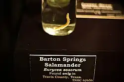 - ^ a b "Barton Springs Salamander (Eurycea sosorum)". Texas Parks and Wildlife Department. Retrieved 15 January 2012.