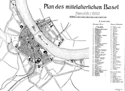 The Jews had lived in Basel since at least 1213, when the local community was one of the largest in Europe.[3] The community grew, and by the middle of the 14th century it featured 19 houses and a synagogue.[4] After they had attacked the Jews in their own domains, other cities wrote to Basel, urging them to burn their Jews as well.[4] With the spread of the Black Death in the 14th century, there were pogroms against Jews triggered by rumours of well poisoning, which contributed to the anti-Semitic sentiment. Although the rumors of well-poisoning certainly played a part in fueling anti-Semitic sentiment in Basel, "the immediate background to the persecution related to social and political problems";[4] some Basel nobles had indeed been temporarily banished from the city on the basis of what was believed to be false testimony provided by the Jews (Ac quibusdam eciam nobilibus Basilee pro quandam iniura Iudeis illata ad logum tempus bannitis).[4] The hatred for the Jews by the lower classes stemmed from their belief the Jews were "allied" with the nobles, to whom they often loaned money, and with whom the workers were in contention in the struggle for power.[4] The fact that the commoners supported the nobles on this occasion indicates the complexity of Basel's social structure. The commoners probably supported the nobles because among them there were some who supported their cause, probably someone with some claim to nobility.[4] Already at Christmas 1348, before the plague had reached Basel, the Jewish cemetery was destroyed and a number of Jews fled the city.