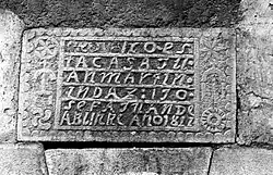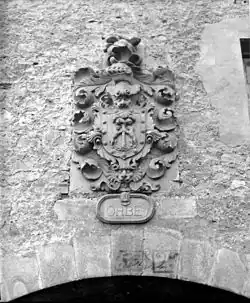 As such, most baserris have a large stone-carved sign built into the front wall called armarriak (crest-stones) and a decorative lintel stone above the entrance called ate-buru or atalburu (door head). The lintel stone usually states who built the house and the year in which it was built. The armarria either states the name of the village or valley or the family's surname and is often in the style of a coat of arms, a sign of the universal gentry enjoyed in Biscay. The latter practice of displaying the surname is mostly found in the Southern Basque Country.[7] Both are often also carved with Basque symbols, many of them pre-Christian, such as the lauburu, animals, plants and mythical figures.
