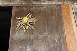 One is the habit of fixing dried silver thistles (called eguzkilore or "sunflower" in Basque, not to be confused with sunflowers, called ekilore) to the doors of a baserri for good fortune. Folklore has it that certain unwelcome spirits such as laminas, witches or devils only operate at night and attaching this flower to the door would lead these beings to assume the sun was shining on the baserri and therefore stay away.[7] By a similar extension of belief, they were also supposed to protect against lightning strikes and storm damage.[7]