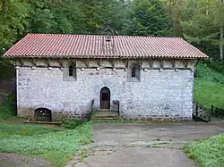 The predecessor of the baserri was the farming community of the late Middle Ages in the hilly Atlantic area, who at one point had learnt and taken up sowing and harvesting (cf. the legend of San Martin Txiki). The families didn't live in baserri buildings as we know today, but in clusters of small wooden fragile shacks with room enough for the family, the cattle and the stored hay.[5] However, the press house, granaries, pigsty and sheepfolds were located in separate buildings.[5] At this stage, the baserri stands clearly for the whole community behind the economic unit. This period also saw the development of the linguistic counterpart to the baserri for religious matters, the baseliza or "wild church".