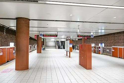 Bashamichi Station (馬車道駅, Bashamichi-eki) is an underground railway station on the Minatomirai Line in Naka-ku, Yokohama, Kanagawa Prefecture, Japan operated by the third-sector railway operating company Yokohama Minatomirai Railway.